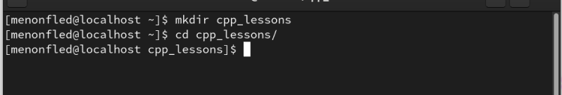 作業用にcpp_lessonsというディレクトリを用意して、この中で作業をしていくことにします。