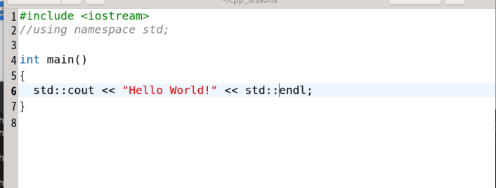 本当は毎回「std::」を付けてあげる方がいいんですけど、このレッスンでは簡潔に書くために2行目のusing~を書くことにします。