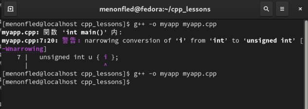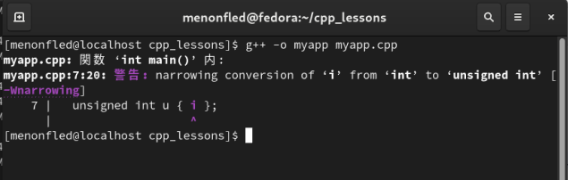 こういうこともあって、先ほどのコードをコンパイルしようとするとコンパイラによっては警告が出ます。