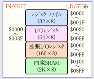 上の図のように、AVRの汎用レジスタにはアドレスが振られています。
