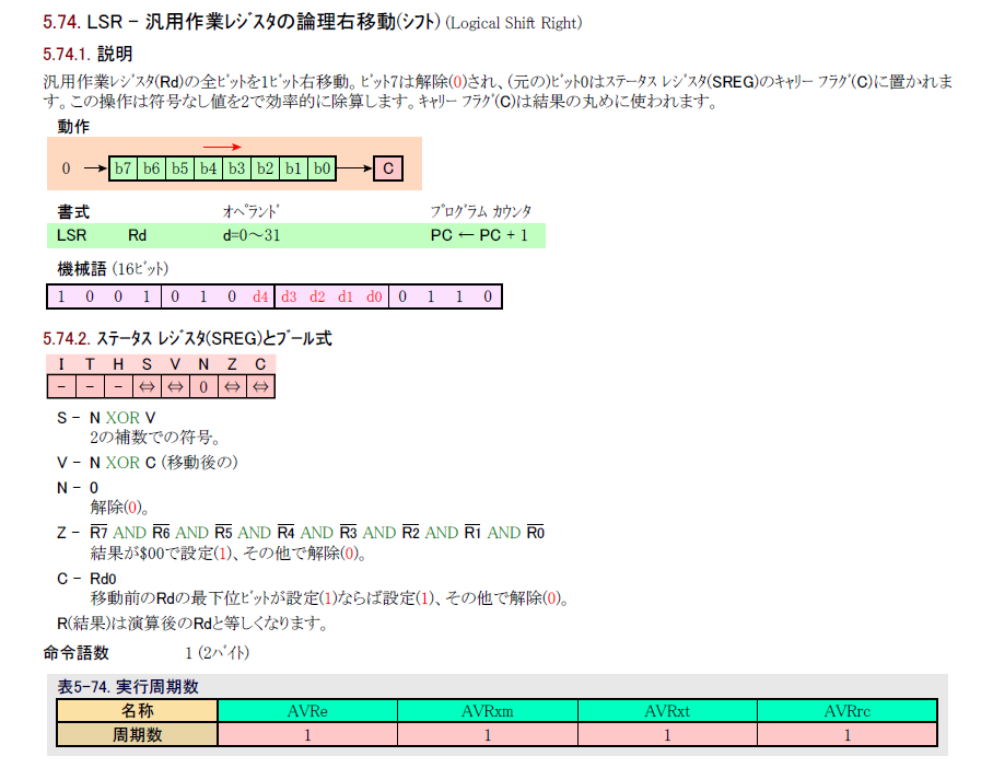 こちらも「AVR®命令一式手引書」から命令の説明を引用します。