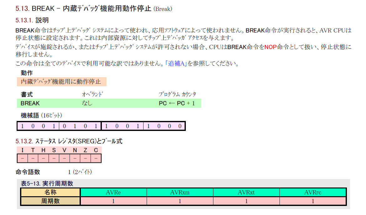 それではいつものように「AVR®命令一式手引書」から命令の説明を引用します。