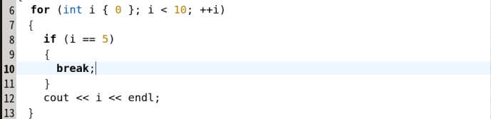たとえば、iが5のときにfor文を抜けたいというときには、breakを書いてあげればOKです。