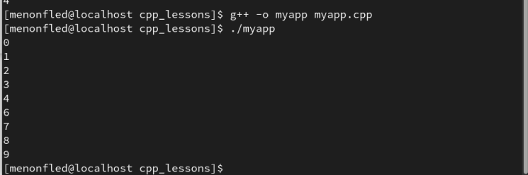 そうするとiが5のときにループから抜けるので0から4が出力されます。