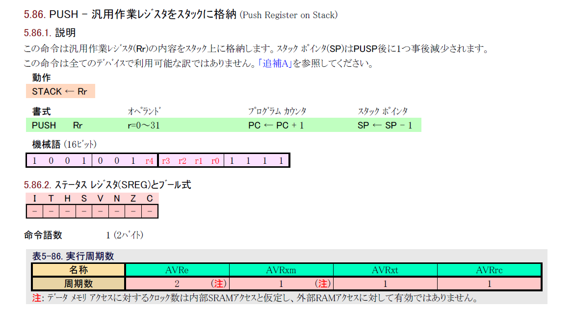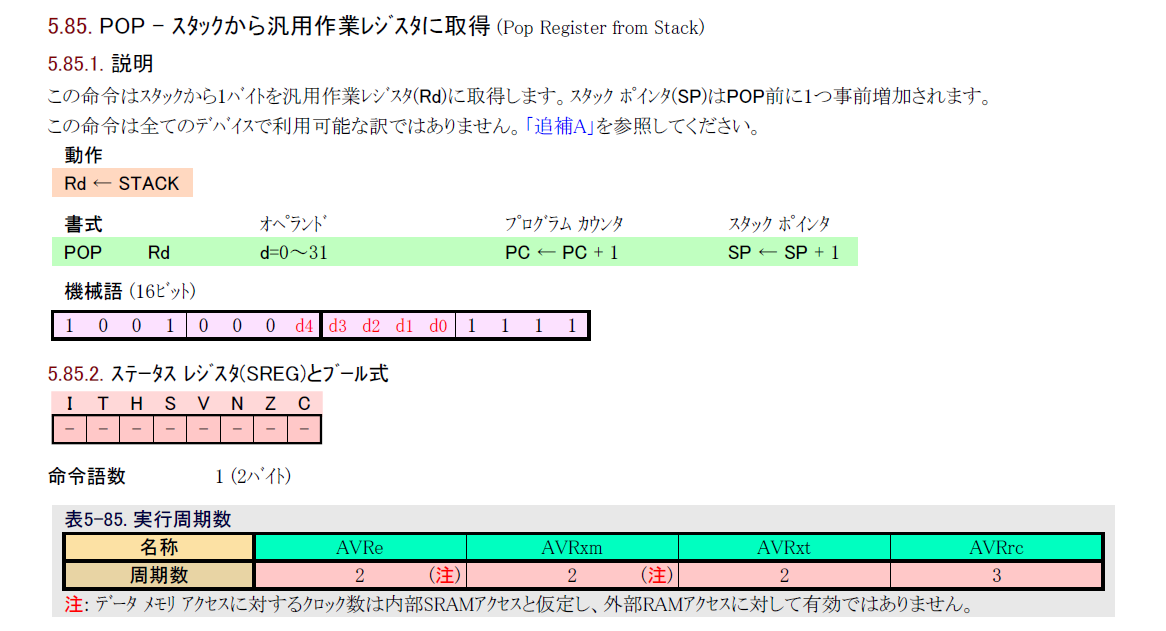 こちらも「AVR®命令一式手引書」から命令の説明を引用します。
