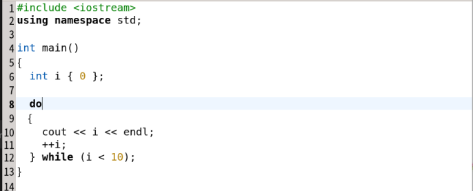 doでは判定をあとに行いますので、必ず1回は波括弧の中が実行されることになります。