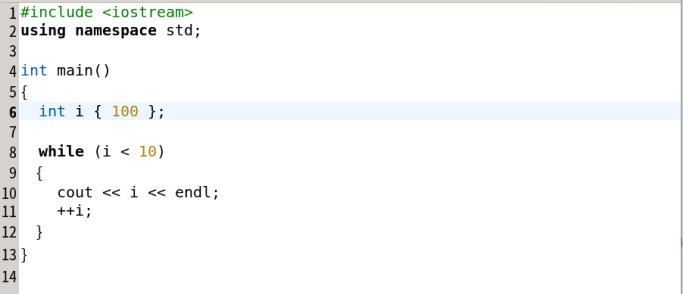 たとえば、変数iの初期値を100に変えてそれぞれ実行してみましょう。